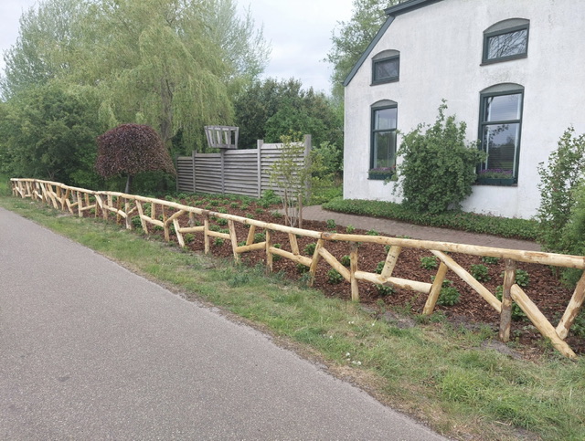 Houthandel Siddeburen focust zich niet alleen op kwaliteit maar ook op duurzaamheid. Zo is op onze informatiepagina te vinden hoelang welke houtsoort in contact met de grond meegaat. Dit is onderverdeeld in vijf duurzaamheidsklassen. Robinia valt bijvoorbeeld onder duurzaamheidsklasse 1 tot 2, dit is zeer duurzaam en betekent dat het hout onbehandeld zo’n 20 jaar meegaat bij grond contact. Douglas heeft duurzaamheidsklasse 3 en gaat onbehandeld zo’n 10 tot 15 jaar mee net zoals geïmpregneerd tuinhout. Vuren valt onder duurzaamheidsklasse 4 en gaat onbehandeld 5 tot 10 jaar mee. Als de paal bij de grond/lucht lijn behandeld wordt over een lengte van ca. 40cm kan de levensduur aanzienlijk verlengt worden.
